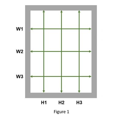 3. When measuring for face (outside) fit, the shutters should be measured in three places across the width and the height (see figure 1, same as in-recess fit) and the largest measurement should be provided. This measurement will be used for calculating the outside of the shutter frame.